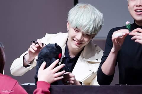 Tu je zopár fotiek z poslednej autogramiády Bts(hore J-hope,v strede Jin a dole Suga.) ♥